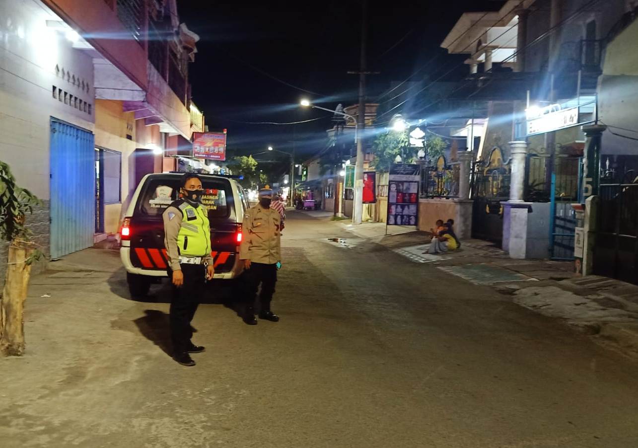 Seputarperak.com- Unit Lantas Polsek Semampir, Polres Pelabuhan Tanjung Perak melaksanakan patroli malam di pemukiman, Sabtu, 28 Agustus 2021.