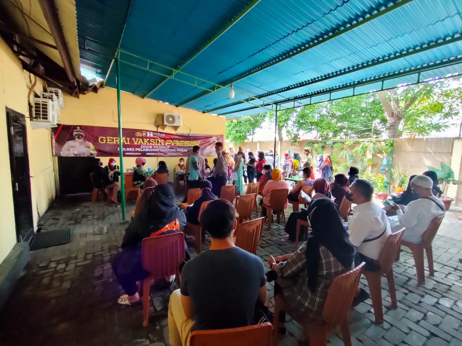 Seputarperak.com- Kegiatan vaksinasi dari Polres Pelabuhan Tanjung Perak dilaksanakan di Mako Polsek Pabean Cantikan di Jalan Stasiun Kota, Senin, 30 Agustus 2021.