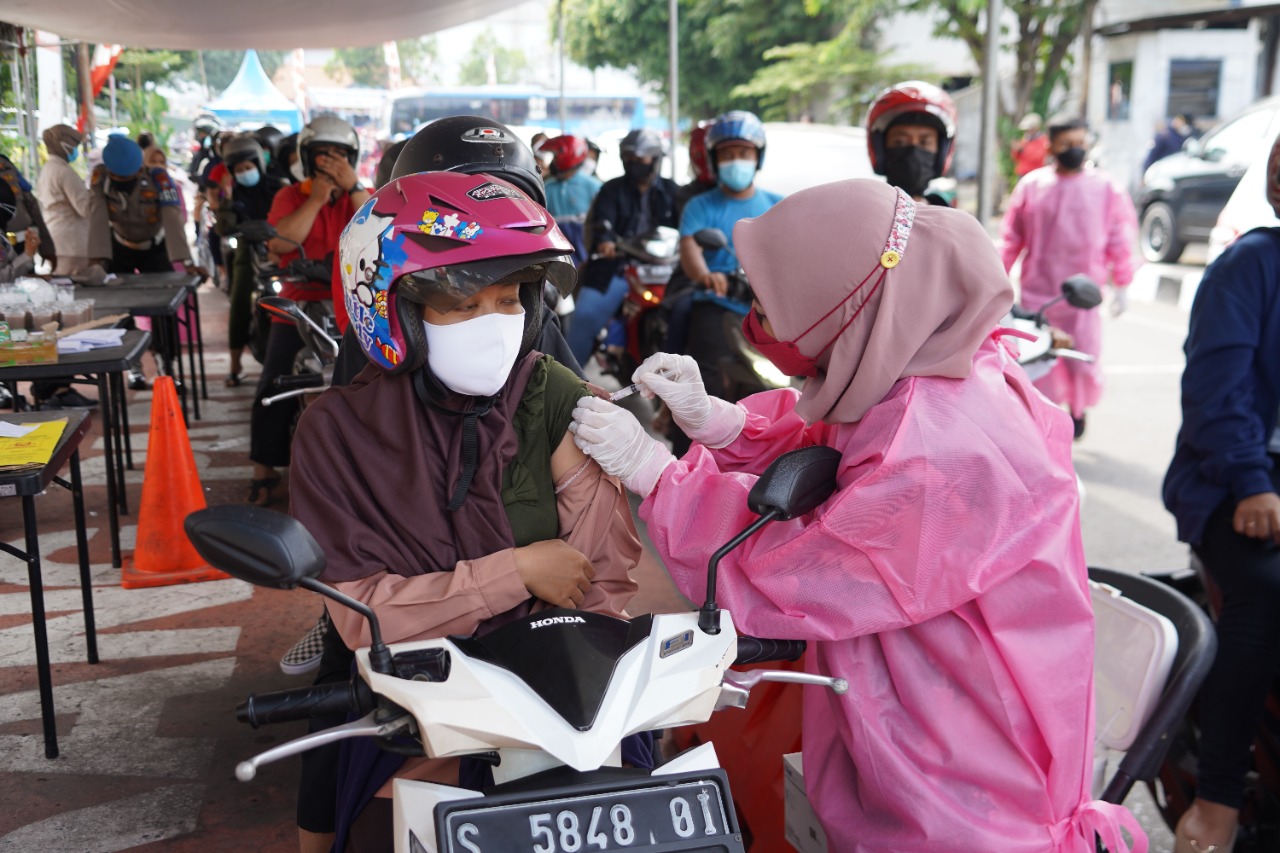 Seperti yang sudah-sudah, vaksinasi drive thru ini dilakukan dengan peserta tetap berada di kendaraan masing-masing. Baik motor maupun mobil.