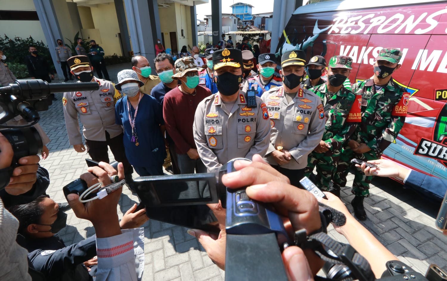 "Kami melihat mobil respon cepat vaksinasi yang beberapa waktu lalu dilepas, dan sampai sekarang berjalan sangat efektif, dengan mendatangi tempat-tempat yang dirasa memerlukan vaksinasi secara langsung. Hari ini dilaksanakan di Tambaksari dengan sasaran sebanyak 500 orang. Kemudian di seluruh Surabaya hari ini mobil vaksin sebanyak 22 mobil targetnya 5000 orang," papar Kapolda Jatim Irjen Pol Nico Afinta.