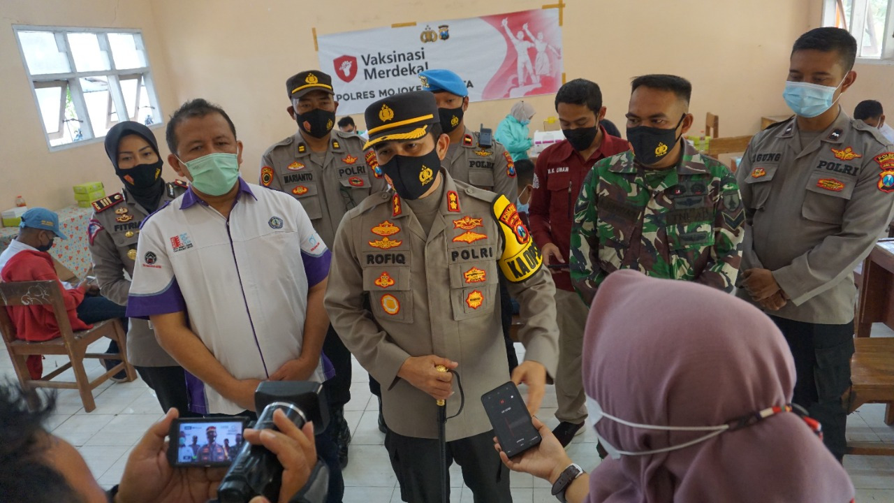 Masih Kata AKBP Rofiq, “Dosis ada yang pertama dan ada yang kedua, arahnya agar lebih siap menjalani PTM dan menerapkan Prokes, juga memenuhi kebijakan Pemerintah dimana disesuaikan sejumlah lokasi kegiatan harus menggunakan atau mendownload aplikasi pedulilindungi,” Pinta Kapolresta Mojokerto