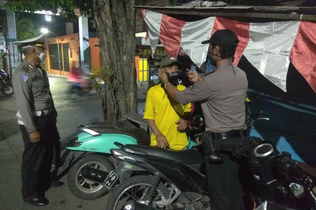 Saat itu personil Polsek Kenjeran membagikan masker kepada masyarakat yang didapati tidak menggunakan masker.