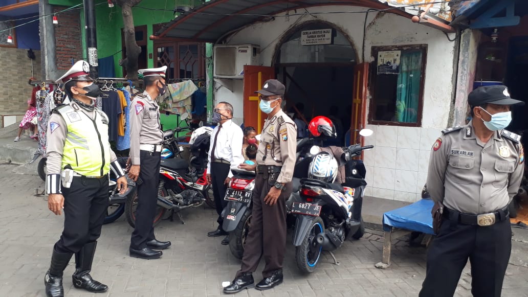 Seputarperak.com- Pengamanan kebaktian dilaksanakan personil Polsek Asemrowo, Polres Pelabuhan Tanjung Perak di Gereja Kristus Injil (GKI) Siloam, Jalan Simorejosari, Minggu pagi, 5 September 2021.