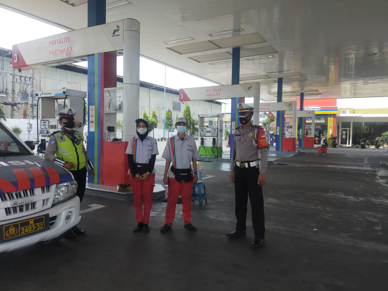 Seputarperak.com- Personil Polsek Asemrowo, Polres Pelabuhan Tanjung Perak melaksanakan patroli di SPBU Jalan Dupak Rukun, Minggu siang, 5 September 2021.
