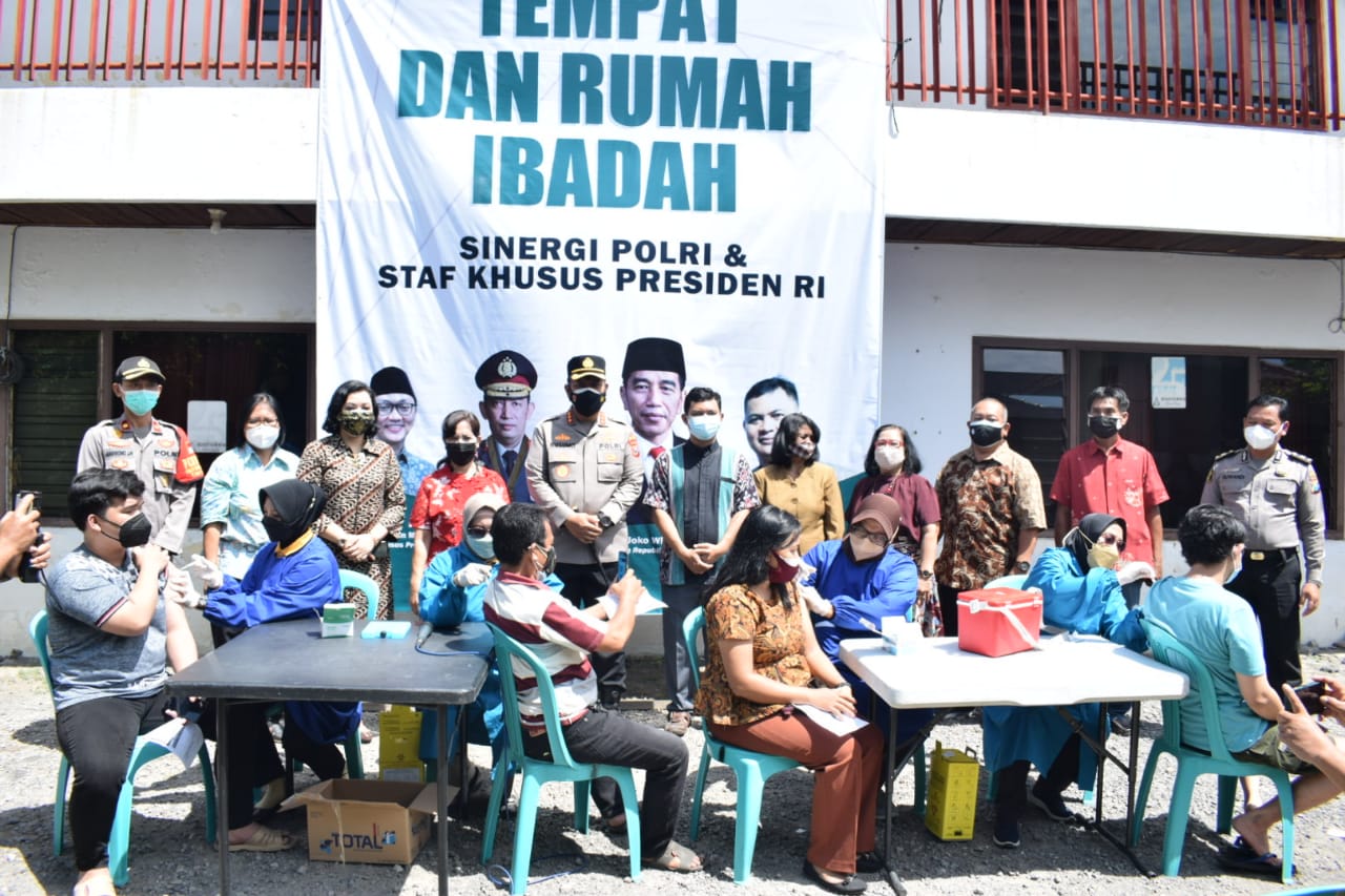 Selain vaksinasi di GKJW, dilakukan juga vaksinasi di tempat-tempat ibadah lainnya. Kapolresta Sidoarjo berharap semua pihak mendukung upaya Pemerintah, TNI dan Polri dalam mempercepat terbentuknya herd immunity, agar mata rantai penyebaran Covid-19 dapat segera terputus.
