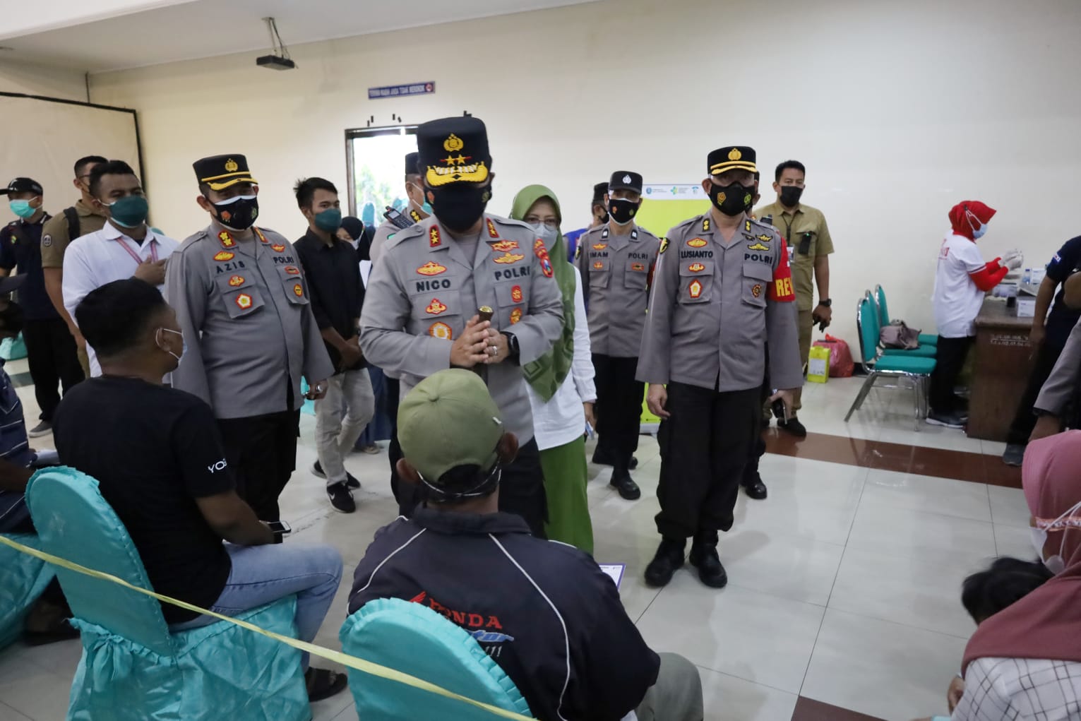 Seputarperak.com- Kapolda Jawa Timur Irjen Pol Nico Afinta bersama Pejabat Utama Polda Jatim, Senin (6/9/2021) melakukan pengecekan vaksinasi Polri, yang berlangsung di 3 tempat, di Kabupaten Ponorogo. Sebanyak 10.000 dosis vaksin jenis sinovac, di targetkan dapat selesai dalam satu hari.
