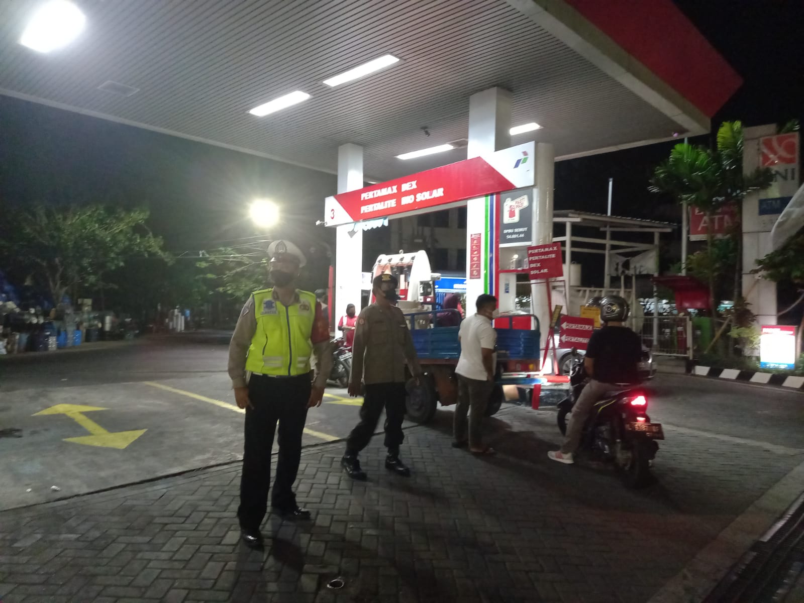 Seputarperak.com- Patroli dilakukan personil Polsek Pabean Cantikan, Polres Pelabuhan Tanjung Perak di SPBU Jalan Stasiun Kota, Senin malam, 6 September 2021.