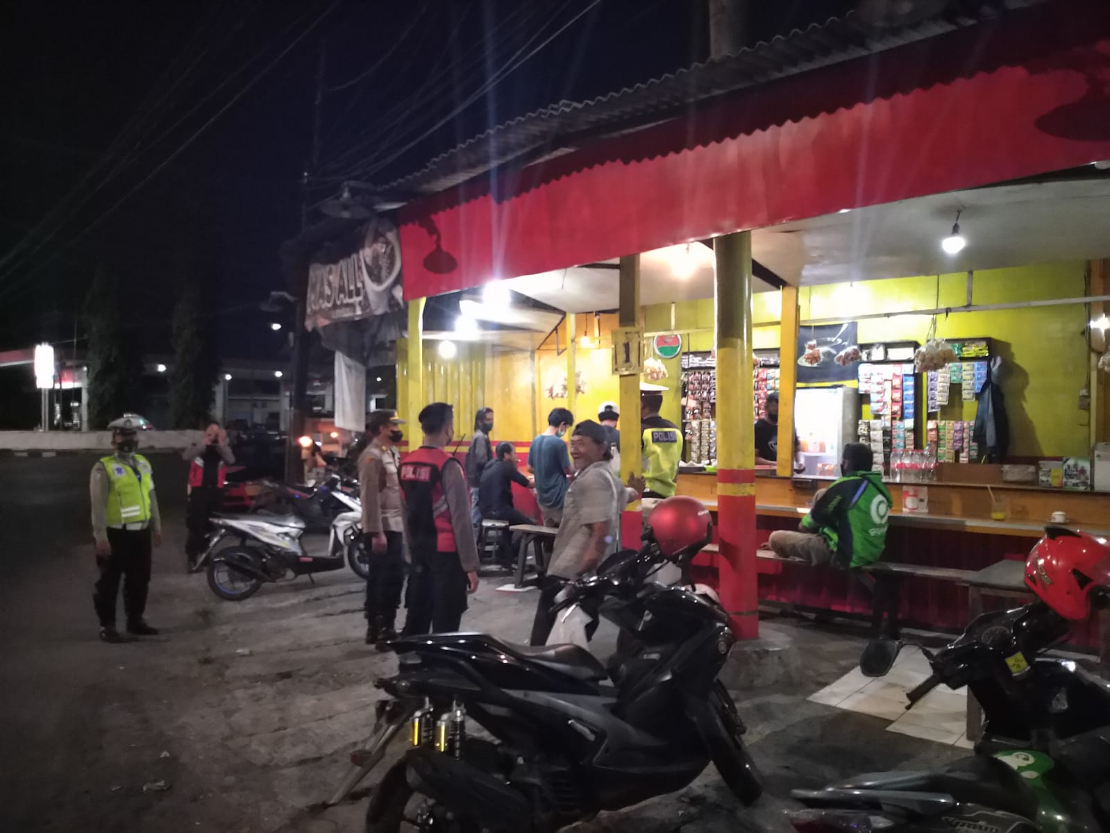 Selain melakukan pemantauan situasi Kamtibmas dan mengantisipasi tindak kriminalitas 3C (Curat, Curas dan Curanmor) serta kerawanan lainnya, para personil juga mendatangi warung-warung yang masih terlihat buka.
