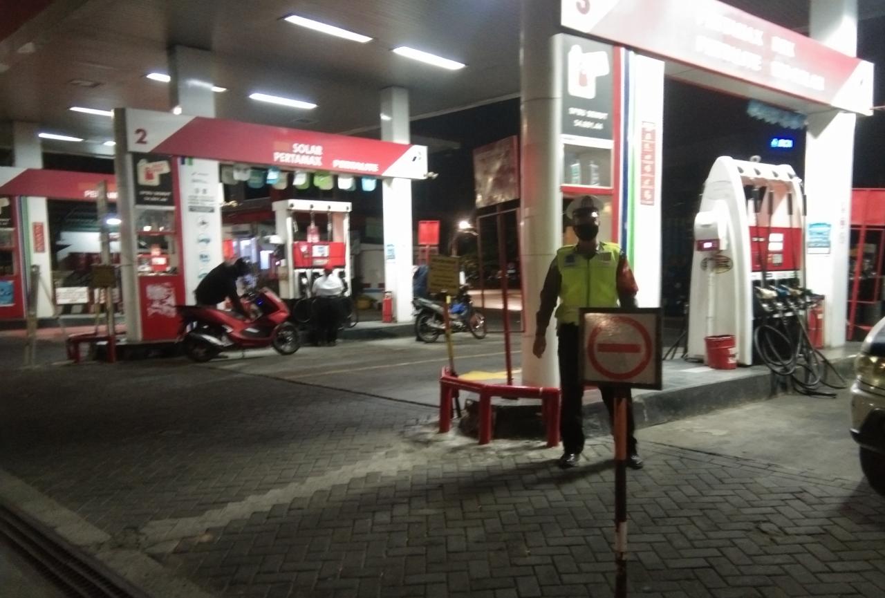 Seputarperak.com- Patroli dilakukan personil Polek Pabean Cantikan, Polres Pelabuhan Tanjung Perak di SPBU Jalan Stasiun Kota, Rabu malam, 15 September 2021.