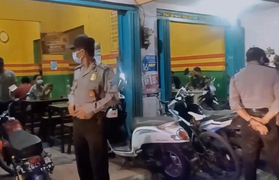 Para pemilik warung, toko dan PKL diberikan teguran terkait pelanggaran jam malam dan diperintahkan untuk segera tutup saat itu juga.