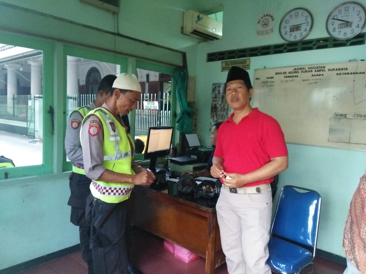 Seputarperak.com- Untuk melancarkan jalannya pengajian yang akan dilaksanakan di Masjid Agung Sunan Ampel, personil Polsek Semampir, Polres Pelabuhan Tanjung Perak melaksanakan koordinasi pengamanan dengan pihak sekuriti setempat.