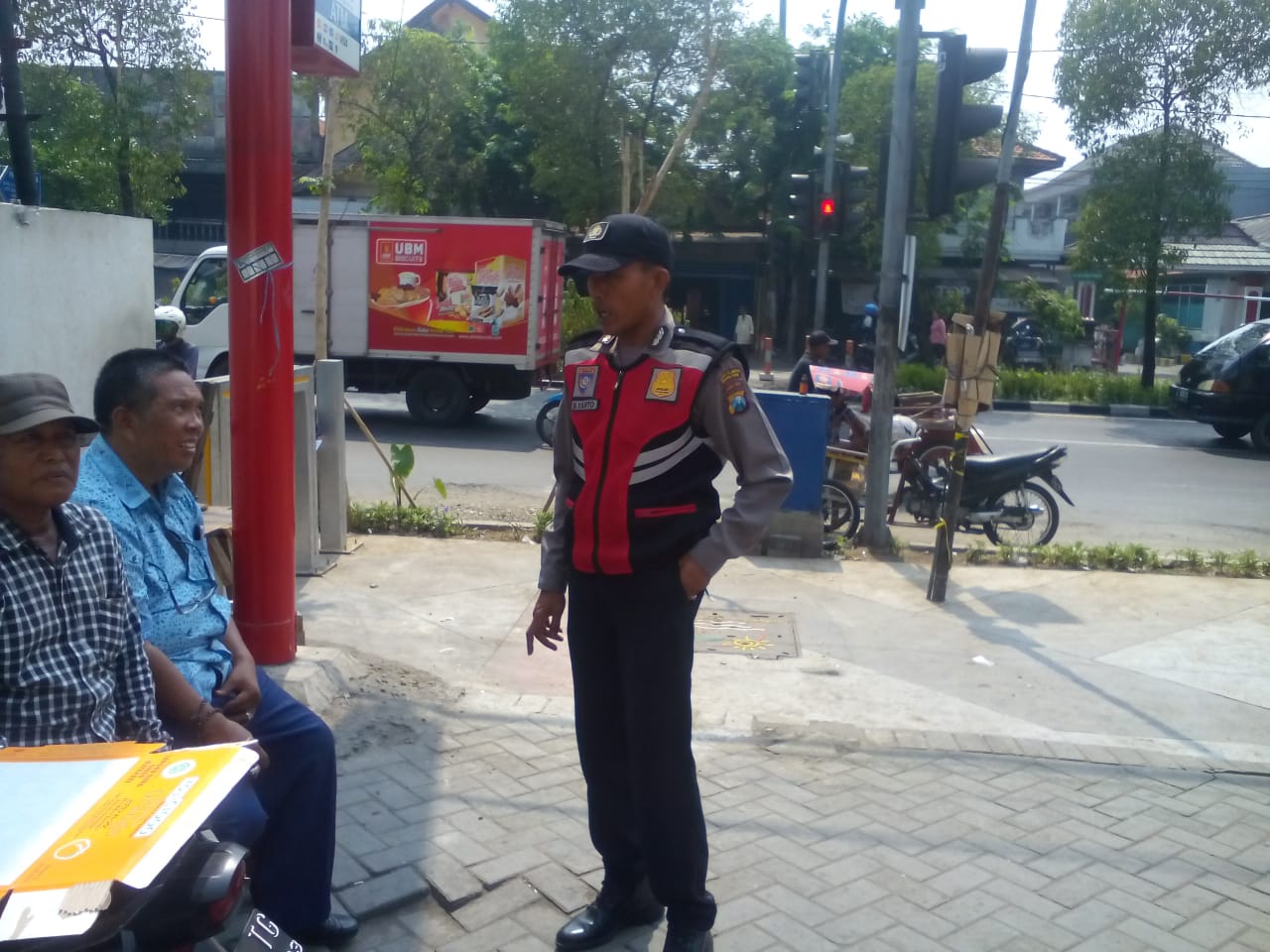 Dalam kunjungannya, Bripka Busaryanato menyampaikan pesan kamtibmas kepada juru parkir yang ada di tempat itu.