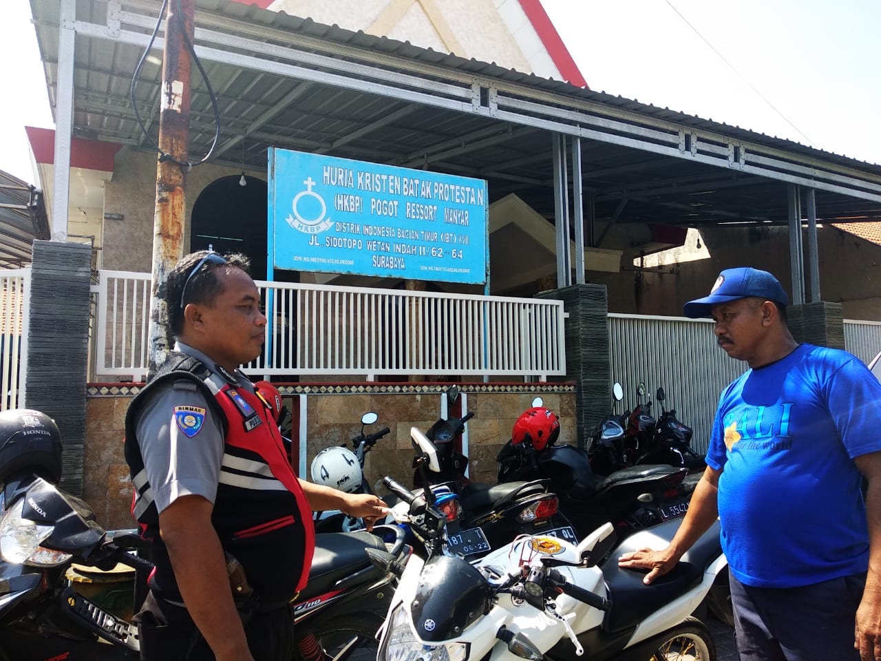 Seputarperak.com- Pengamanan kebaktian di gereja HKBP Sidotopo Wetan dilakukan Polsek Kenjeran, Polres Pelabuhan Tanjung Perak, Minggu pagi, 23 September 2018.