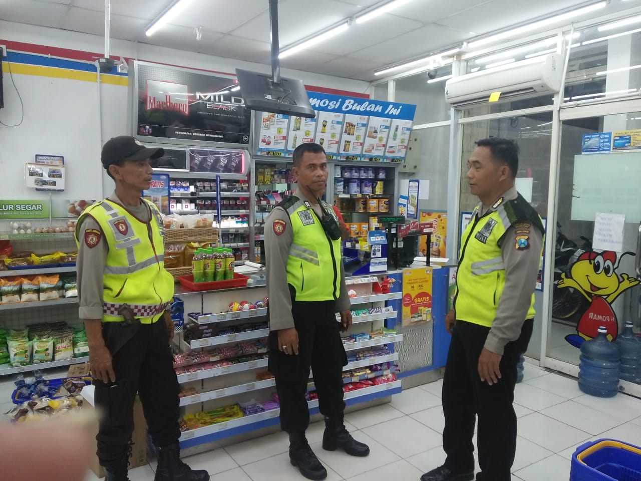 Selain melakukan pengawasan di bagian luar dan dalam untuk mengantisipasi tindak kriminalitas, personil Unit Lantas dan Unit Sabhara menyampaikan himbauan kepada para karyawan mini market.