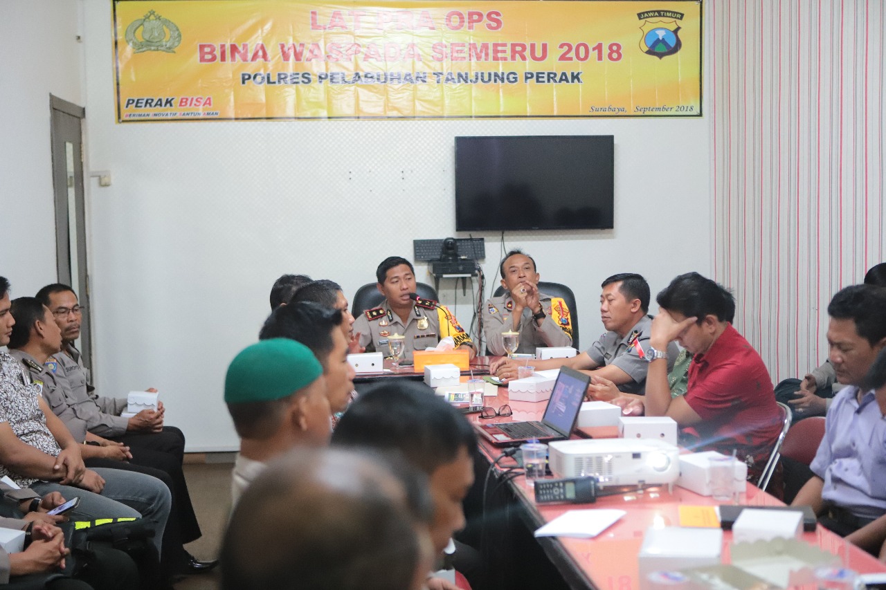 Seputarperak.com- Guna melancarkan jalannya kegiatan Operasi Bina Waspada Semeru 2018, Polres Pelabuhan Tanjung Perak menggelar latihan pra operasi.