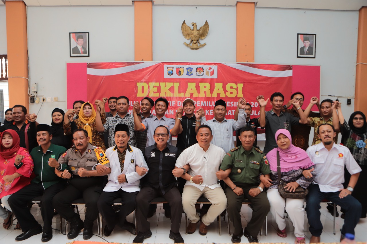Seputarperak.com- Deklarasi Pemilu 2019 yang aman, damai dan sejuk digelar di kantor Kecamatan Bulak, Jalan Kyai Tambak Deres, Rabu, 3 Oktober 2018. Kegiatan ini dipimpin Kapolsek Kenjeran, Polres Pelabuhan Tanjung Perak, Kompol H Sucipto.