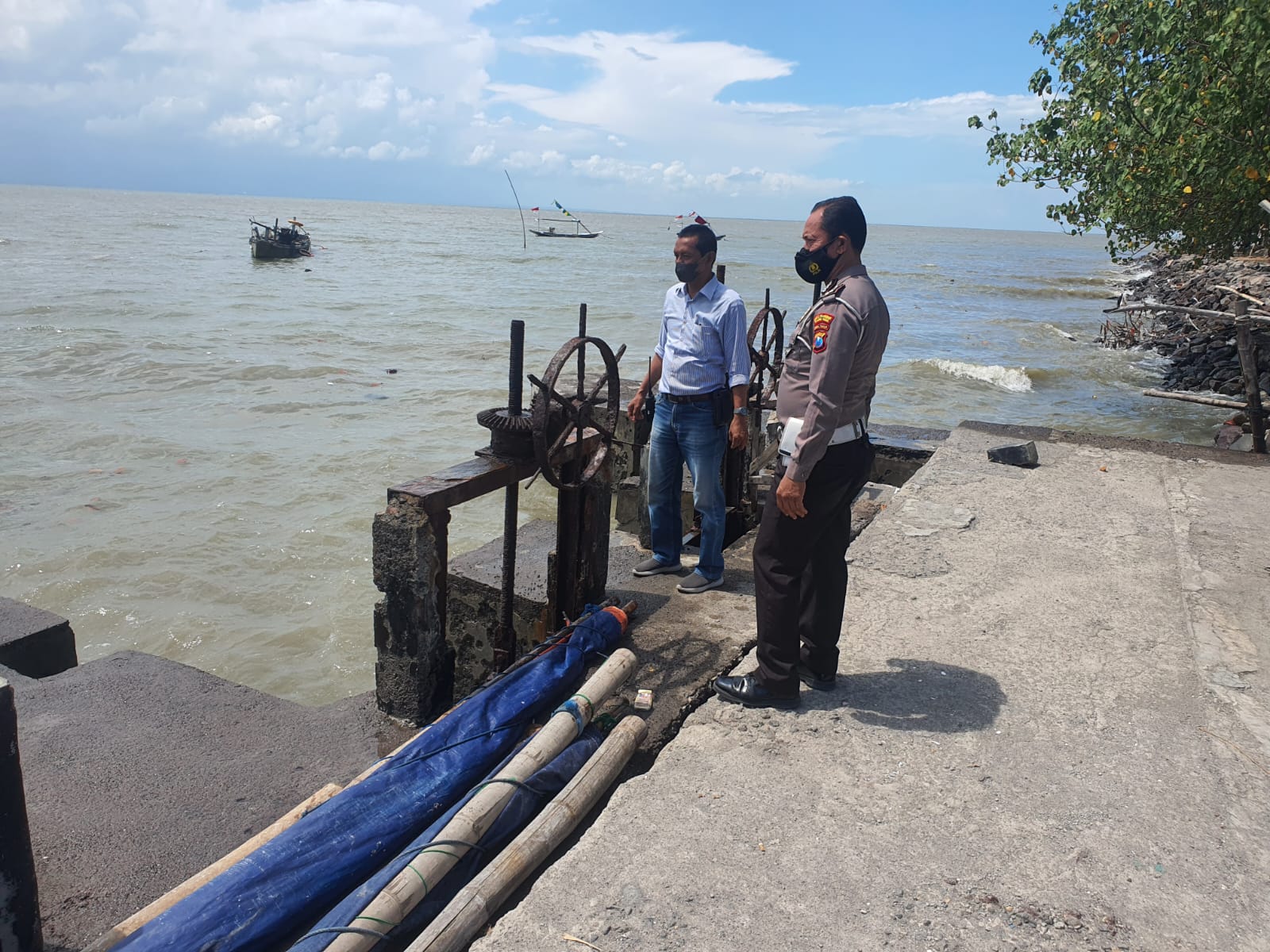 Seputarperak.com- Personil Polsek Kenjeran, Polres Pelabuhan Tanjung Perak melaksanakan pemantauan debit air laut di Pantai Ria Kenjeran, Jalan Sukolilo Larangan, Jumat, 12 Agustus 2022.