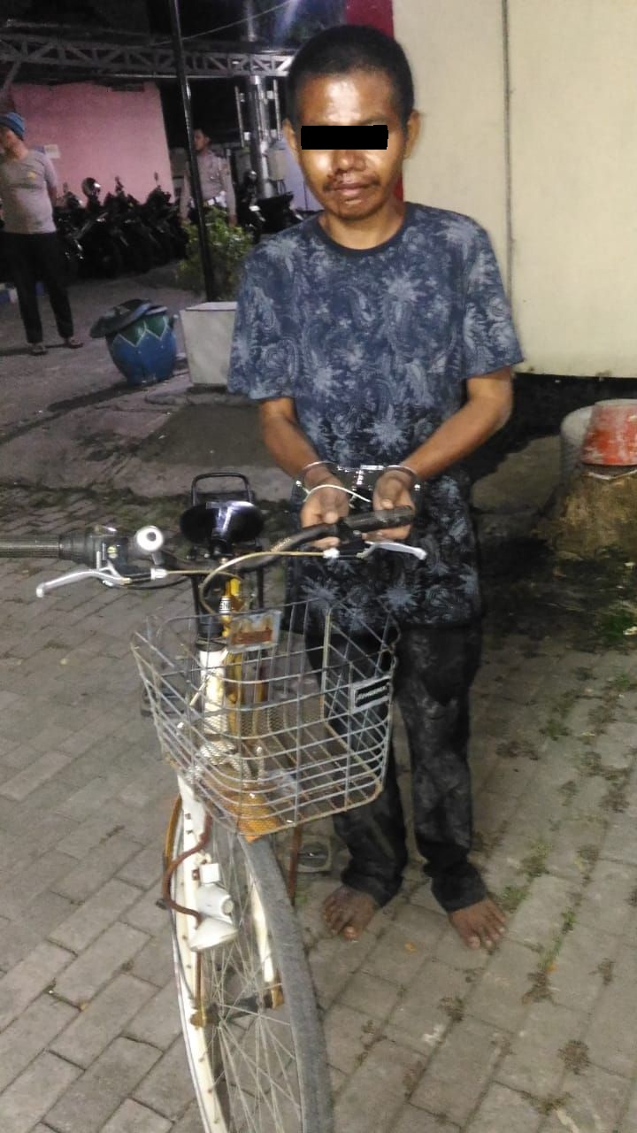 Seputarperak.com- Lelaki yang satu ini terpaksa berurusan dengan polisi gara-gara kepergok melakukan pencurian sepeda angin di Perumahan Pantai Mentari, Kecamatan Kenjeran.