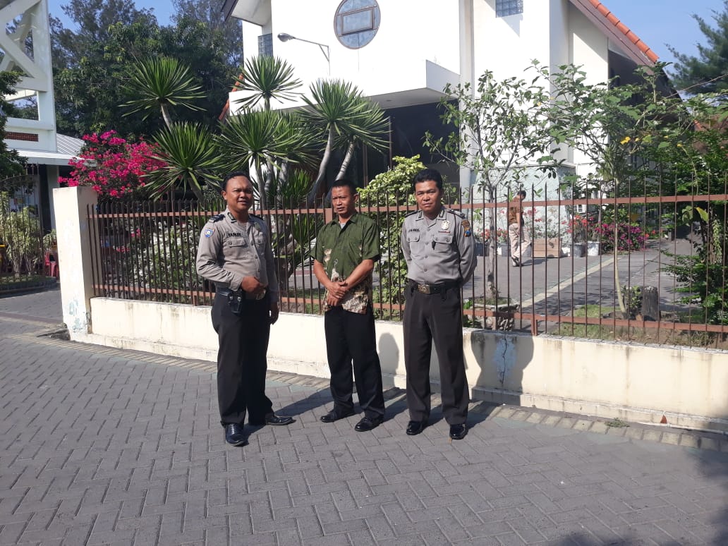 Seputarperak.com- Ibadah rutin yang digelar di gereja Santo Mikael Jalan Tanjung Sadari, Minggu pagi, 7 Oktober 2018, mendapat pengawalan Polsek Krembangan, Polres Pelabuhan Tanjung Perak.