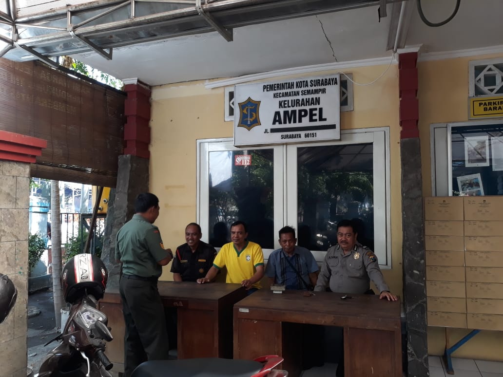 Seputarperak.com- Dalam kunjungannya ke kantor kelurahan, Senin, 8 Oktober 2018, Aiptu Achmad Faruk, Babinkamtibmas Ampel, Polsek Semampir, Polres Pelabuhan Tanjung Perak menyampaikan pesan kamtibmas kepada anggota Linmas, staf kelurahan dan juga Babinsa.