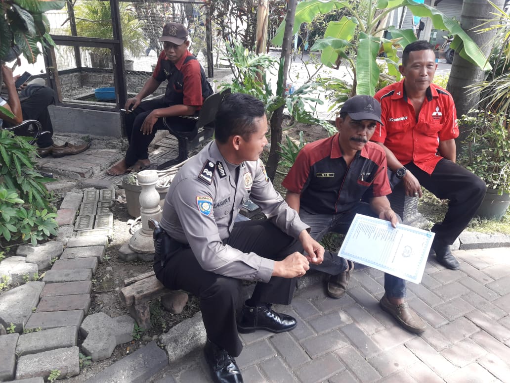 Selasa siang, 9 Oktober 2018, Aiptu Lagiman sambang ke kantor Samsat Kenjeran, guna menemui para pekerja bagian cek fisik kendaraan.Diantaranya adalah Bapak Siswanto.
