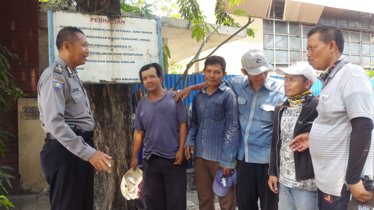 Seputarperak.com- Pesan kamtibmas disampaikan personil Satbinmas Polres Pelabuhan Tanjung Perak kepada para juru parkir di seputaran Jalan Perak Timur, Jumat siang, 12 Oktober 2018.