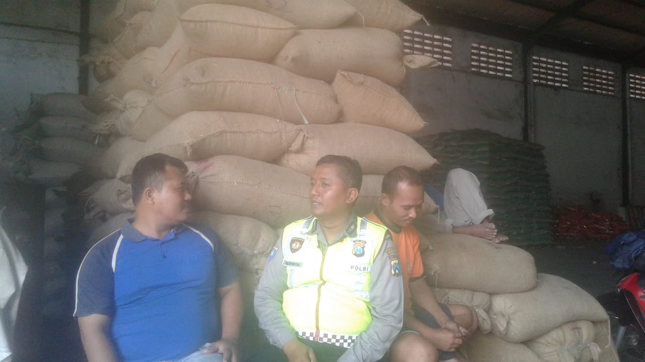 Seputarperak.com- Himbauan keselamatan disampaikan Aiptu Heru Winarto, Babinkamtibmas Perak Utara, Polsek Pabean Cantikan, Polres Pelabuhan Tanjung Perak, saat sambang pergudangan Kalimas, Jumat, 19 Oktober 2018.