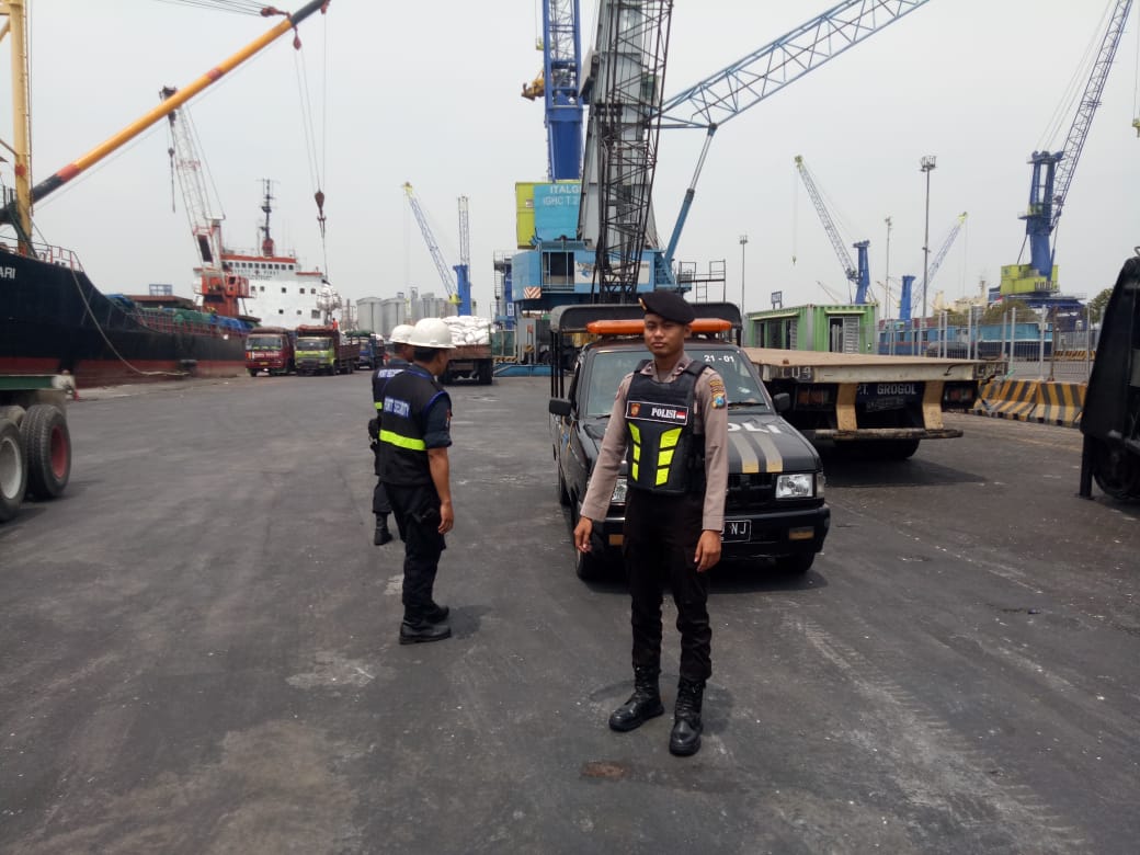 Seputarperak.com- Patroli rutin dilakukan personil Satsabhara Polres Pelabuhan Tanjung Perak bersama sekuriti Pelindo, di seputaran kawasan Pelabuhan Jamrud Selatan.