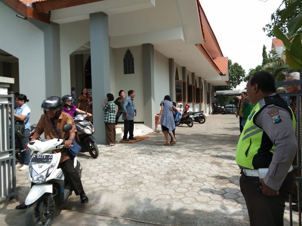 Seputarperak.com- Ibadah rutin di Gereja Kristen Jawi Wetan (GKJW) Jalan Tanjung Sadari, mendapat pengawalan dari Polsek Krembangan, Polres Pelabuhan Tanjung Perak, Minggu pagi, 21 Oktober 2018.