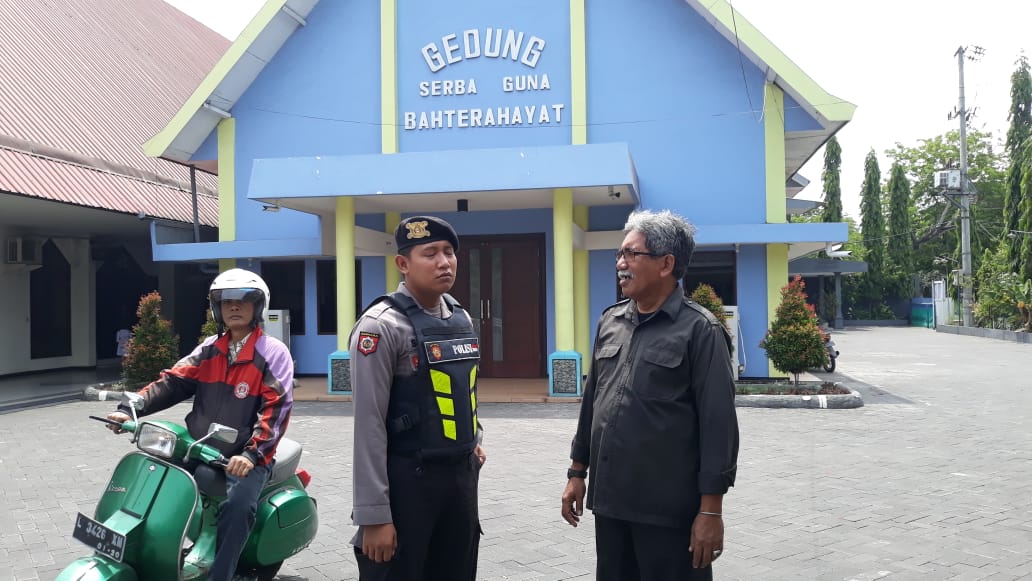 Seputarperak.com- Pengamanan kebaktian dilakukan personil Satsabhara Polres Pelabuhan Tanjung Perak di Gereja Bahtera Hayat, Jalan Laksda M Natsir, Minggu pagi, 21 Oktober 2018.