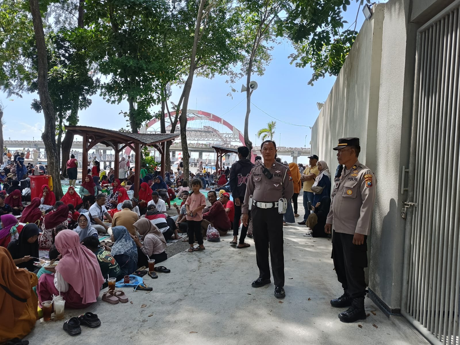 Seputarperak.com- Pengamanan dilakukan Polsek Kenjeran, Polres Pelabuhan Tanjung Perak di THP Pantai Ria, untuk mengantisipasi tindak kriminalitas terhadap para pengunjung, Minggu, 1 Juli 2023.