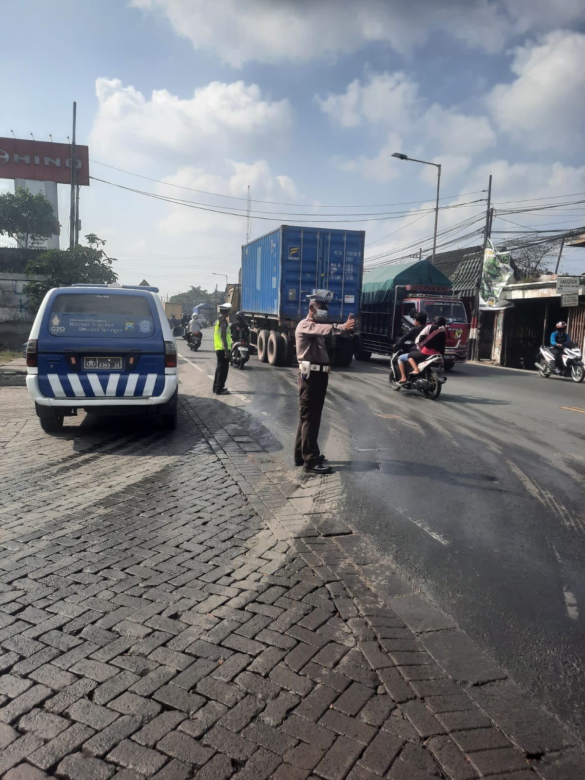 Polsek Krembangan Laksanakan Pemantauan Arus Lalu Lintas Jalan Kalianak, Terpantau Arus Lancar