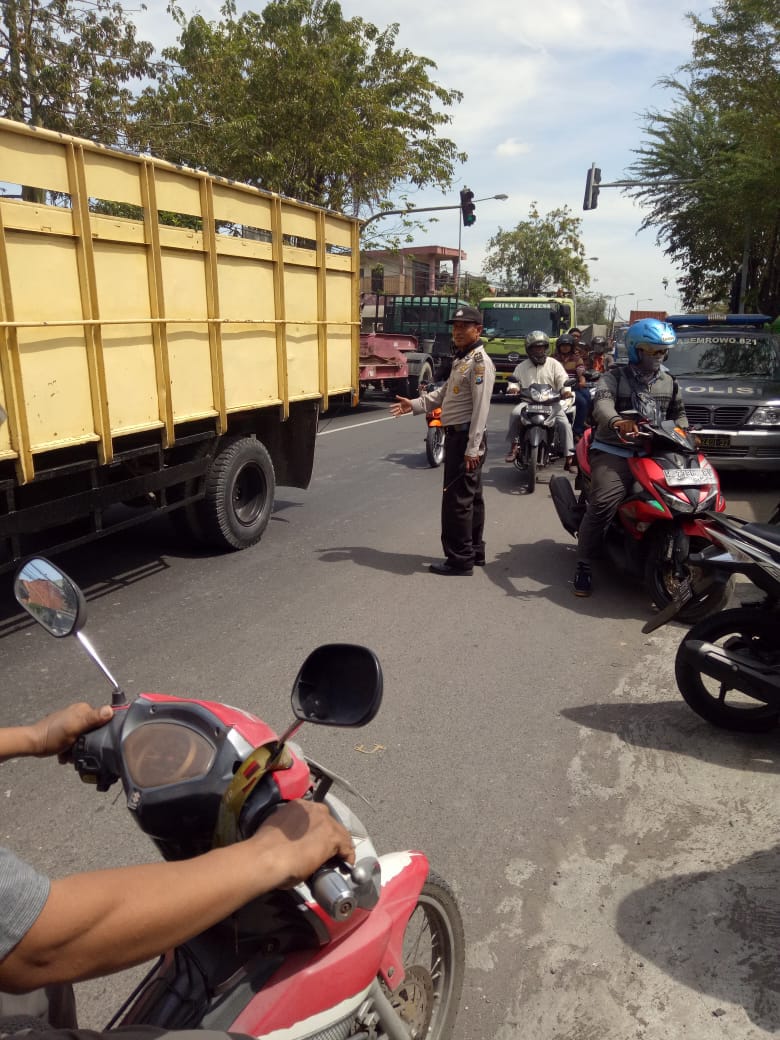 Guna melancarkan arus lalu lintas itu, personil Polsek Asemrowo pun turun tangan. Mereka langsung bergerak melakukan pengaturan lalu lintas.