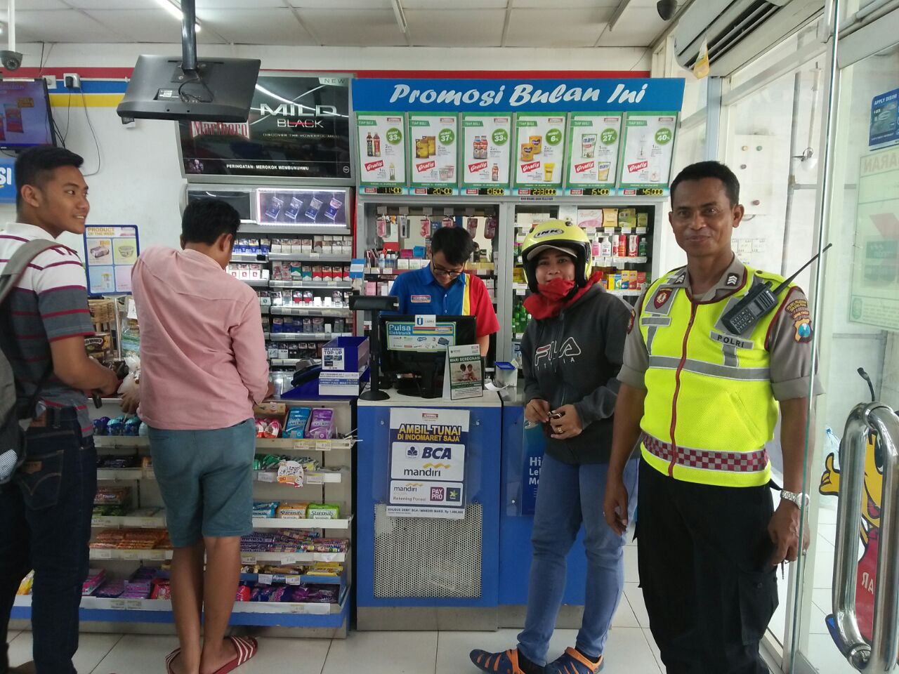 Saat itu, personil Unit Sabhara mengunjungi Alfamart di Jalan Sidotopo, sembari melakukan dialog dengan pegawai Alfamart dan beberapa warga sekitar.