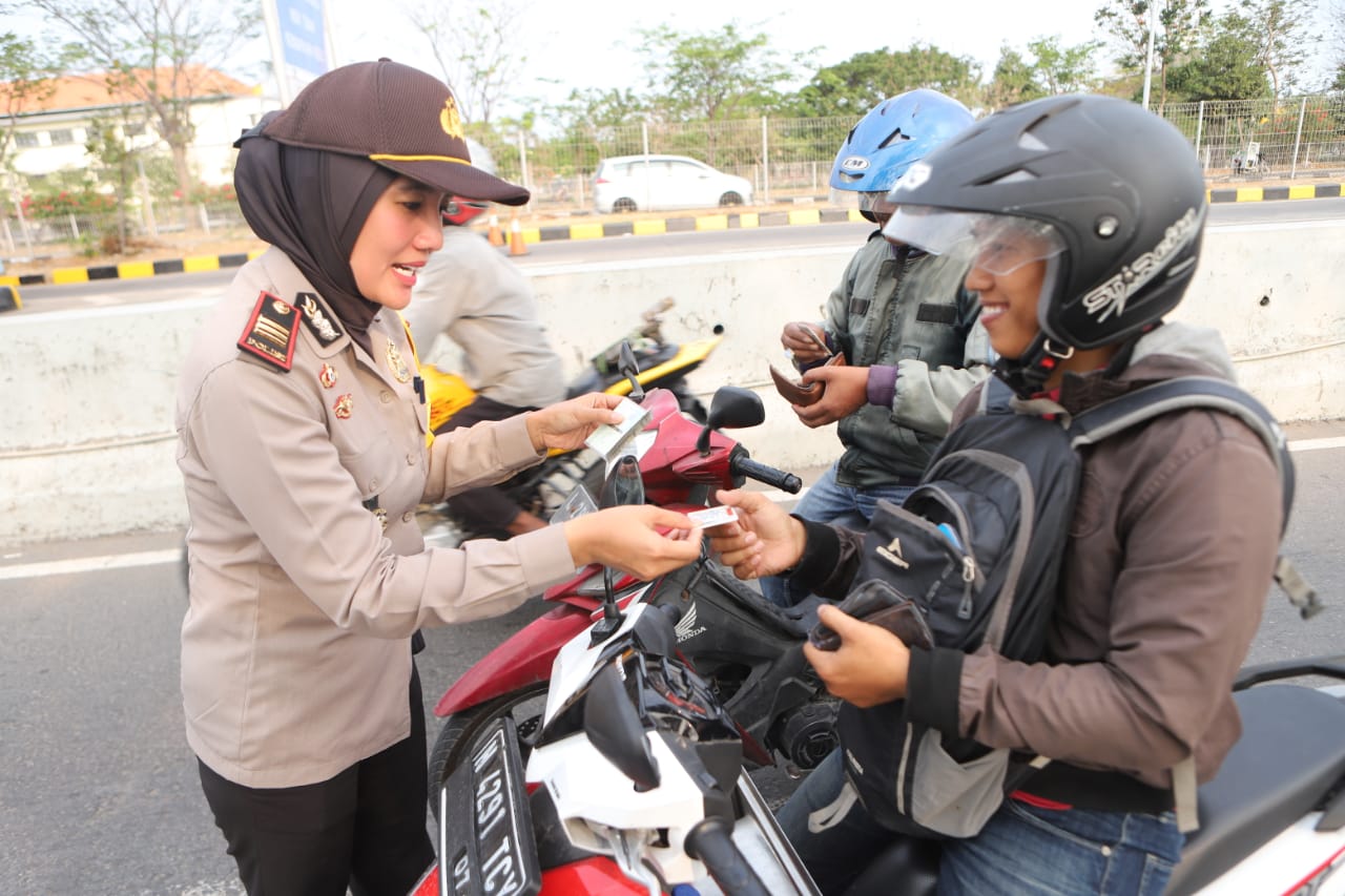 Tidak hanya para personil. AKP Mellysa selaku pimpinan operasi juga memberikan teguran kepada para pengendara yang dinilai sembrono, seperti tidak mengancingkan tali helm.