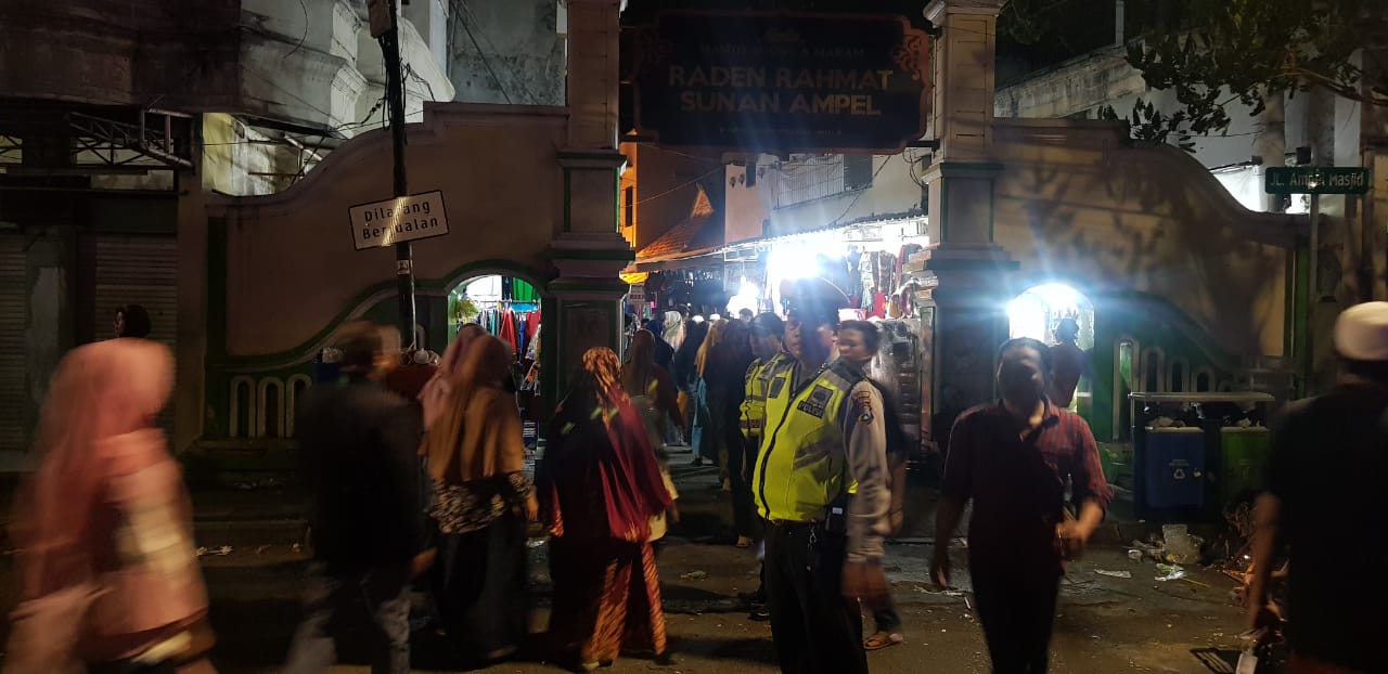 Seperti yang dilakukan Minggu malam, 4 Nopember 2018, dimana penjagaan mulai dilakukan di pintu masuk, kemudian di lorong atau gang hingga ke tujuan akhir yaitu makam dan masjid Ampel.