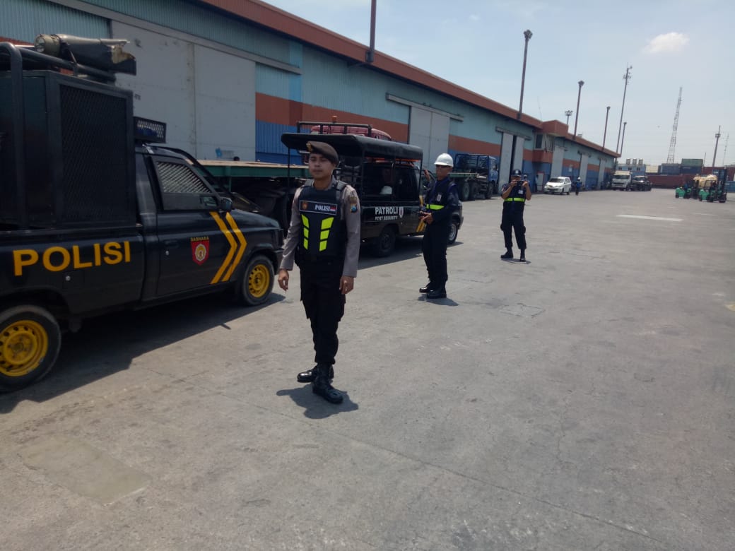 Seputarperak.com- Patroli rutin kembali dilakukan personil Satsabhara Polres Pelabuhan Tanjung Perak bersama sekuriti Pelindo, Senin sore, 5 Nopember 2018 di kawasan Terminal Mirah.