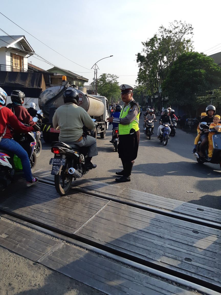 “Sangat berbahaya sekali kalau sampai terjadi kemacetan di sekitar palang pintu rel kereta api. Inilah sebabnya personil unit Lantas selalu siaga disana,” ujarnya.