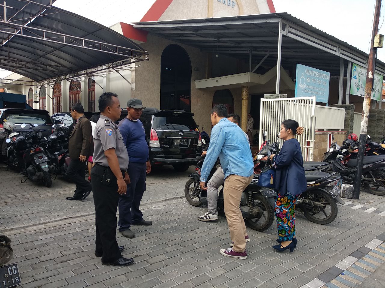 Situasi dan kondisi di gereja Alfa Omega saat misa berlangsung Minggu, 27 Mei 2018, aman terkendali.