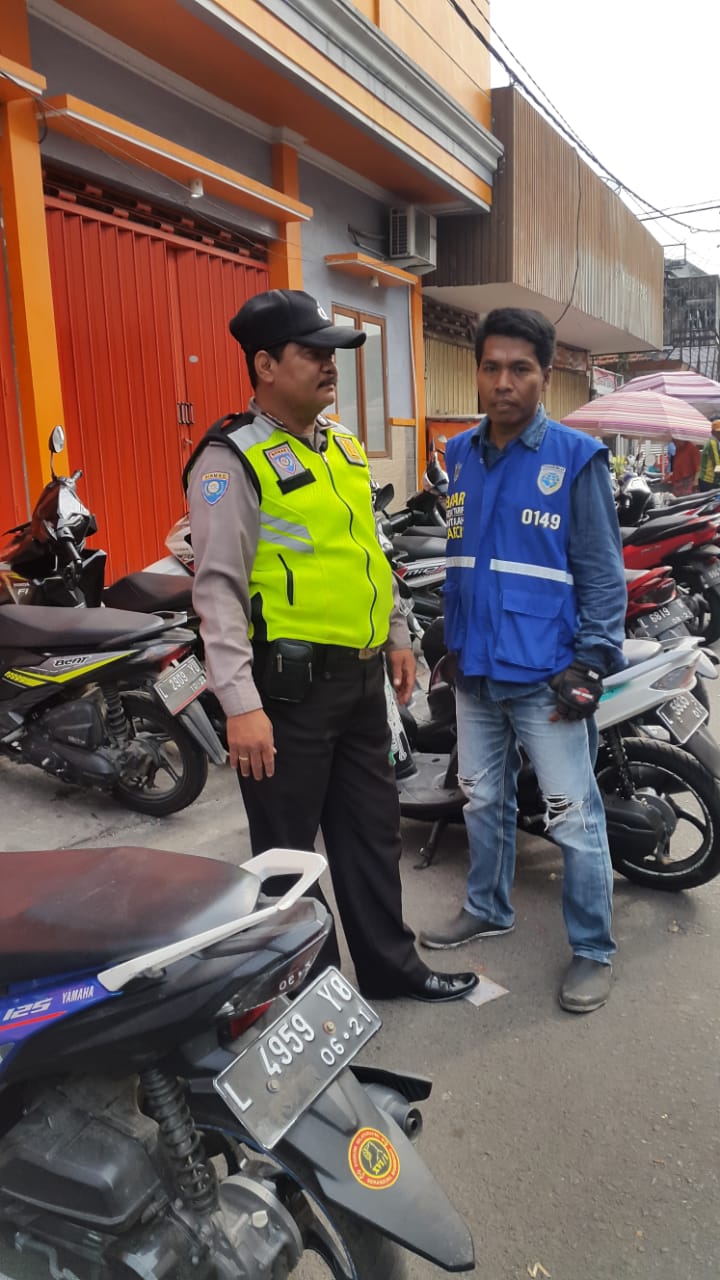 Kepada penjaga parkir bernama Holili, Aiptu M Yasin memberikan himbauan agar yang bersangkutan tidak lengah dalam menjalankan tugasnya.