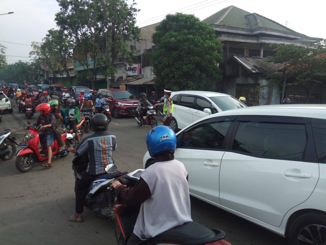 Meski jalanan terlihat padat kendaraan pagi itu, namun kemacetan tidak sampai terjadi. Para pengguna jalan tetap dapat bergerak leluasa di bawah komando yang diberikan personil yang bertugas.