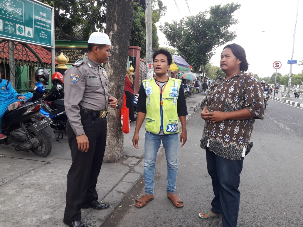 Seputarperak.com- Himbauan kamtibmas disampaikan Aiptu Lagiman, Babinkamtibmas Tanah Kali (Takal) Kedinding, Polsek Kenjeran, Polres Pelabuhan Tanjung Perak, kepada juru parkir di Masjid As-Siddiq Jalan H.M Noer, Jumat siang, 9 Nopember 2018.