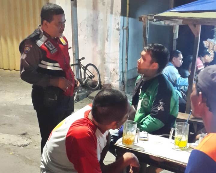 Aiptu M Yasin menyampaikan kepada warga, salah satunya Hanafi, seorang pengemudi ojek online, agar selalu berhati-hati ketika berkendara di jalan raya.