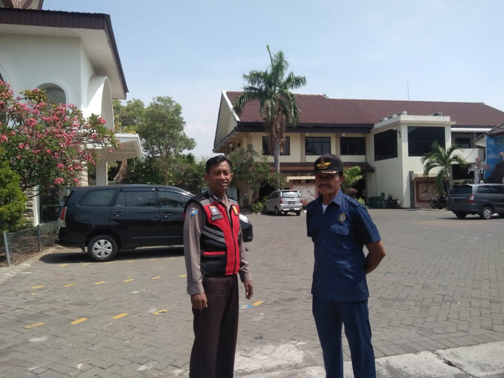 Seputarperak.com- Kebaktian yang berlangsung di Gereja St Marinus Jalan S Memet, Minggu pagi, dikawal Aipda Dhanu Kriswana, Babinkamtibmas Sukolilo Baru, Polsek Kenjeran, Polres Pelabuhan Tanjung Perak, Minggu, 11 Nopember 2018.