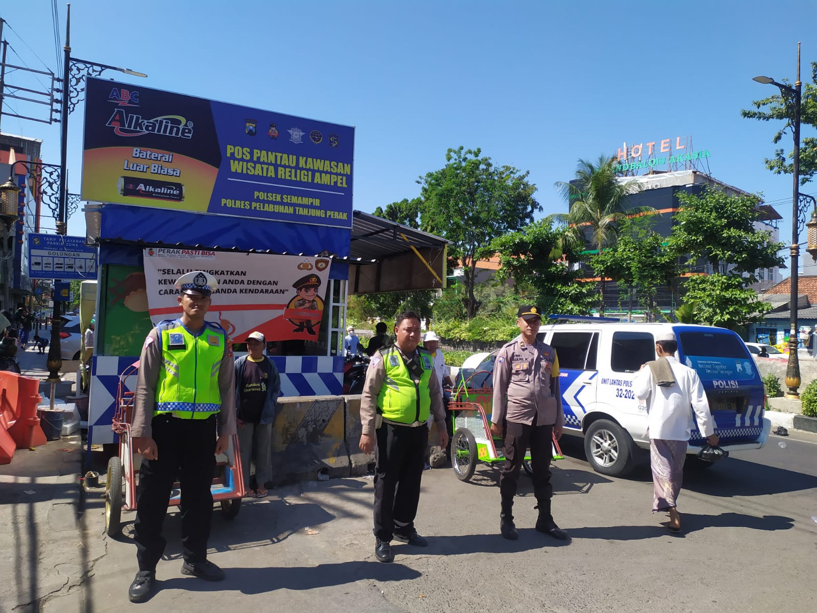 "Saat ini, situasi di depan pintu masuk Wisata Religi Ampel terpantau aman dan terkendali. Kami terus meningkatkan kehadiran dan patroli rutin untuk memberikan rasa aman kepada pengunjung serta mencegah terjadinya tindak kejahatan di tempat wisata ini," ungkap Ipda Sugiyono kepada awak media.
