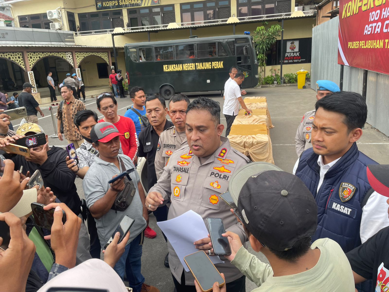 Tanjungperak - Dua minggu pelaksanaan 100 hari kepemimpinan Presiden Prabowo Subianto, Polres Pelabuhan Tanjung Perak meringkus puluhan tersangka. Sebanyak 22 tersangka diamankan dari judi online (judol), Tindak Pidana Perdagangan Orang (TPPO), dan Tindak Pidana Perlindungan Anak (TPPA).