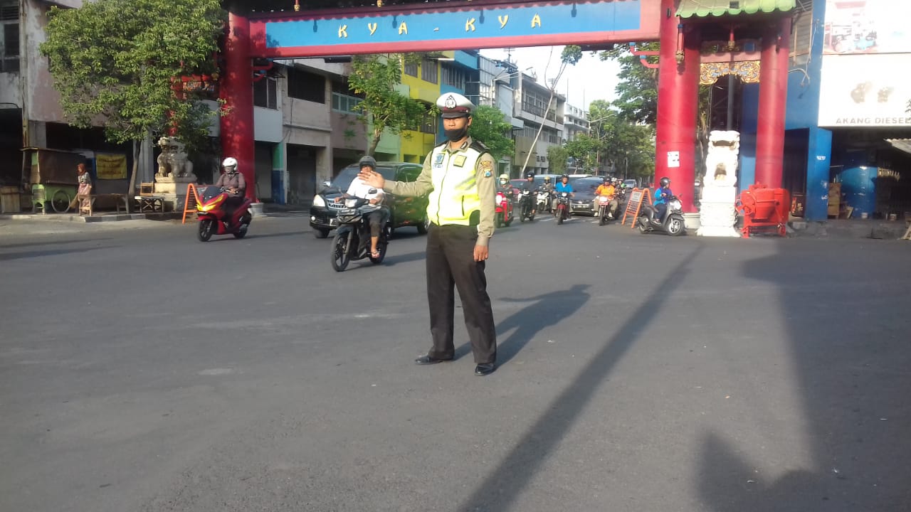 Seperti yang dilakukan personil Unit Lantas Polsek Pabean Cantikan di kawasan Jalan Kembang Jepun, Jumat pagi, 16 Nopember 2018.