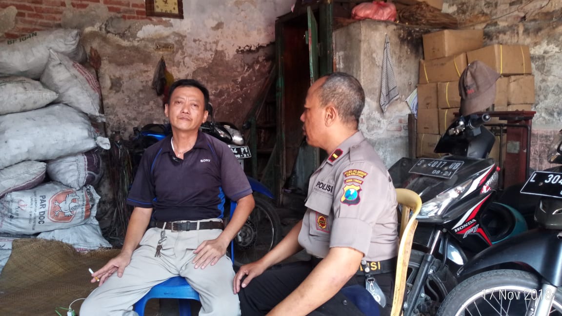 Seputarperak.com- Pesan positif disampaikan Ipda Munir, Kanit Binpolmas Satbinmas Polres Pelabuhan Tanjung Perak kepada tokoh pemuda (toda) Bapak Purnomo di kediamannya di Jalan KH Mansyur, Sabtu, 17 Nopember 2018.