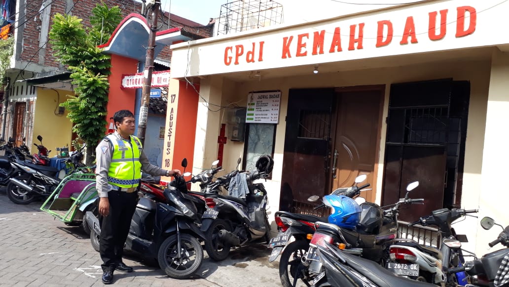 Pengamanan ini dilakukan oleh satu personil Polsek Semampir dibantu oleh petugas keamanan gereja.