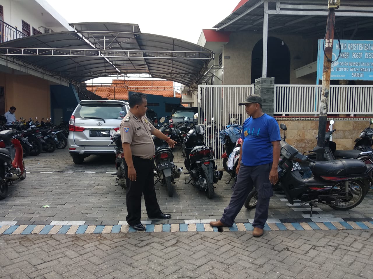 Seputarperak.com- Pengamanan kebaktian di Gereja HKBP di Jalan Sidopoto Wetan Indah, Minggu pagi, 18 Nopember 2018 dilaksanakan oleh Aiptu Puji Sugiarto, Babinkamtibmas Kedung Cowek, Polsek Kenjeran, Polres Pelabuhan Tanjung Perak.